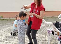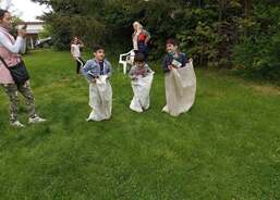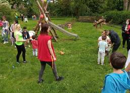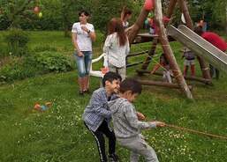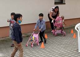 Maminky nachystaly občerstvení a pracovnice Domova připravily pro děti odpoledne plné zábavy. Na naší krásné zahradě vzniklo několik stanovišť, kde děti plnily rozličné úkoly – skákaly v pytlích, lovily rybičky, skládaly puzzle, házely míčky na cíl, přetahovaly se na laně a absolvovaly náročnou překážkovou dráhu zakončenou slalomem kočárků a odrážedel. Na závěr si ještě vylosovaly los v tombole, ve které vyhrával každý. Soutěžní část odpoledne byla zakončena slavnostním předáním medailí, které vyráběla jedna z maminek. A jak naše děti dopadly? Všechny skončily na krásném děleném prvním místě!